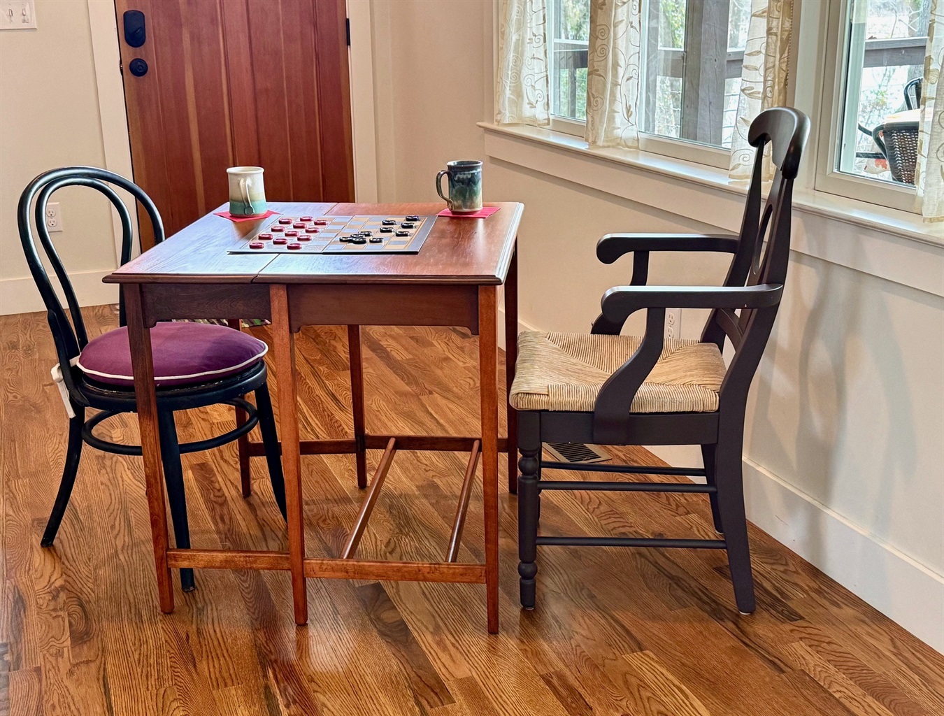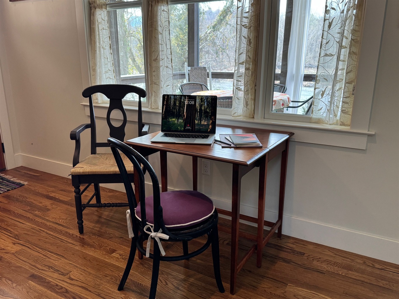 If you simply want peace and quiet, you have comfortable reading chairs (many slipcovered), games and puzzles, a small library and a writing table with wonderful river views.
