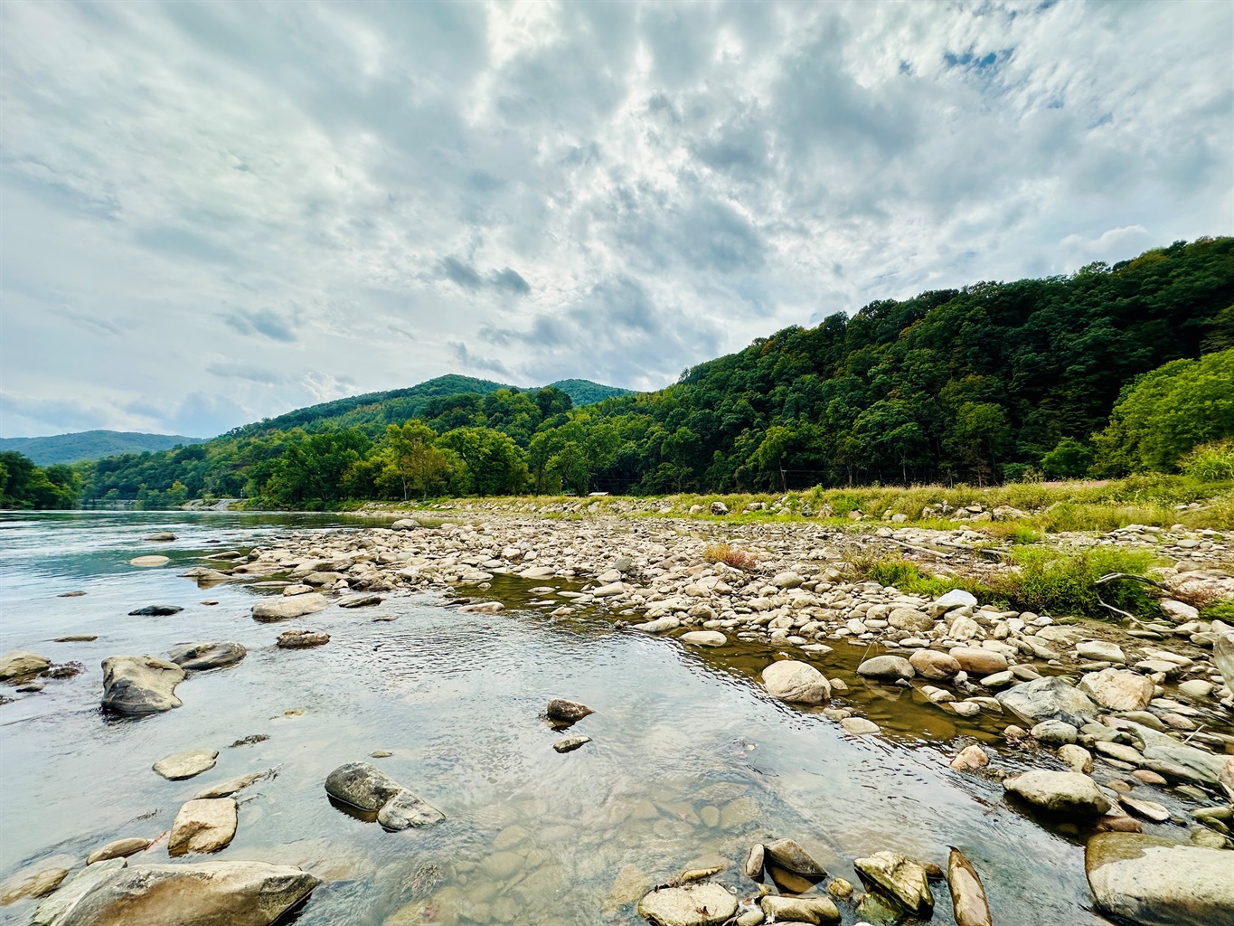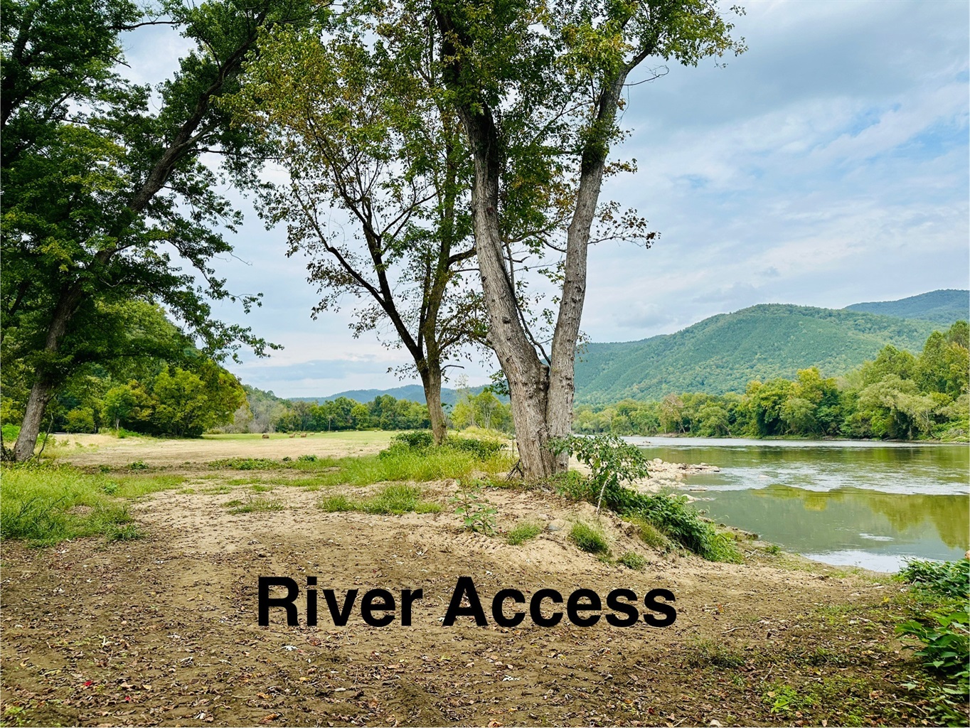 The French Broad River is a short walk from Riverstone (5 minutes or less) and is part of this property. There is a large hayfield that is harvested a couple of times a year. When the hay is growing, we mow some paths into the field so guest can walk around. Depending on what your activity schedule is, you may never want to leave this spot. Perfect for a picnic, fishing, and watching the water roll by. For added enjoyment you may bring your favorite camp chairs or hammock setup. We have made a path to the access the river on the far right of the field